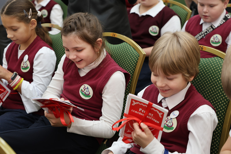 Школьники, их учителя, родители и бабушки познакомились с творческой концепцией книжного набора. Красочная книга «Рецепт семейной легенды» – кулинарный и фольклорный путеводитель по культурам разных народов. На его страницах русские блины соседствуют с татарской сумсой, узбекский лагман – с еврейской шакшукой, а каждая сказка, доступная по