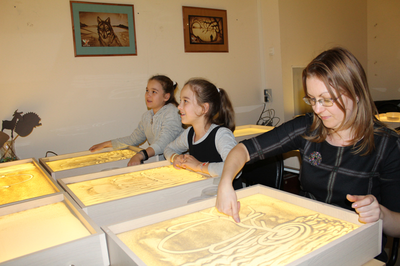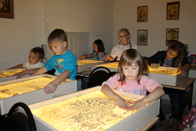 Вместе с художником Мариной Бритовой дети «рисовали» обычным песком персонажей из басен знаменитого классика, оживающих на глазах у зрителей. Мастер-классы по песочной анимации стали настоящим маленьким чудом и для детей, и для взрослых, не оставив никого равнодушным.