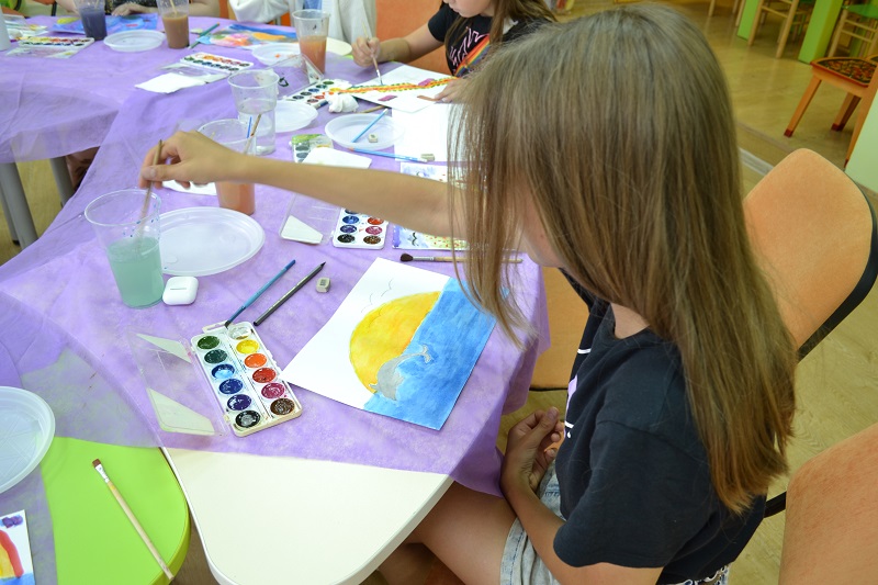 18 августа в рамках проекта «Рисунки на здоровье» был проведен мастер-класс для воспитанников летнего туристического лагеря «РЯЗАНЬ». Волонтеры культуры рассказали про проект «Рисунки на здоровье», показали красочный арт-объект, который был создан в нашем городе в рамках проекта. Ребятам очень понравилась идея украшать стены поликлиник и больниц яркими красками, они с удовольствием стали придумывать сюжеты рисунков для наших художников. Запечатлеть свои идеи на бумаге им помогала педагог-руководитель творческой студии «Шмель», Юлия Незаленова, которая провела мастер-класс по рисованию для ребят.