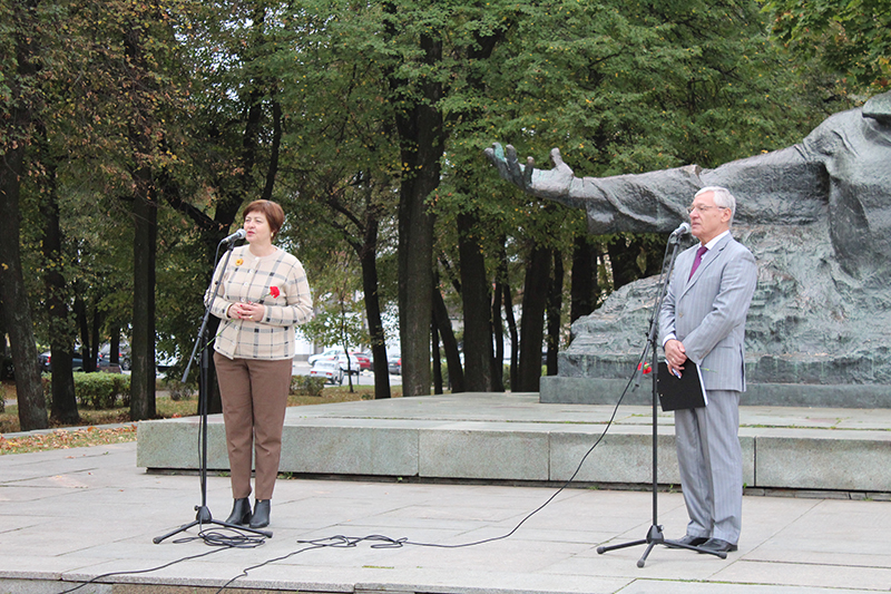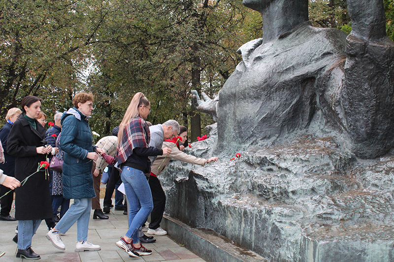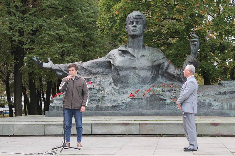 По сложившейся традиции все участники митинга возложили цветы к памятнику поэту.