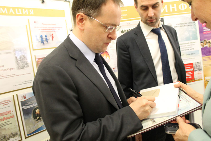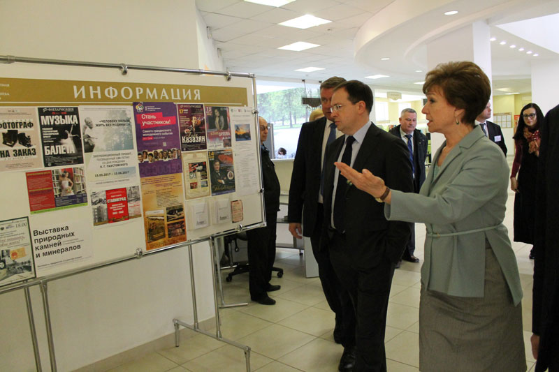 По окончании пленарного заседания министр культуры РФ В. Р. Мединский и и.о. Губернатора Рязанской области Н. В. Любимов посетили областную библиотеку им. Горького. Директор библиотеки Н. Н. Гришина познакомила гостей с условиями работы читателей и сотрудников, показала читальные залы и выставочные зоны. В большом конференц-зале состоялась встреча В. Р. Мединского и Н. В. Любимова с работниками культуры Рязанской области. Гости ответили на многочисленные вопросы собравшихся. Конкретный и откровенный разговор вселяет уверенность в дальнейшем активном развитии культуры России и нашей Рязанщины.