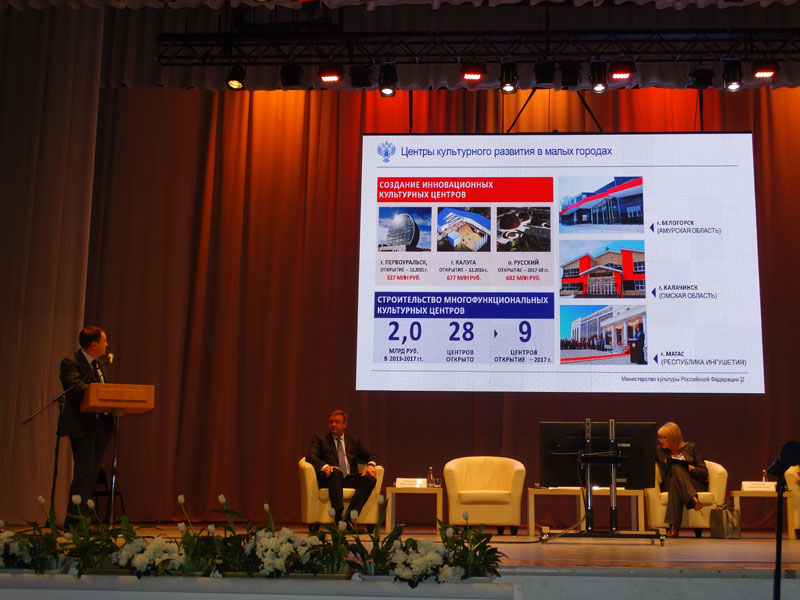 В выступлениях министра культуры РФ Владимира Ростиславовича Мединского, а также министров культуры Московской, Самарской, Тамбовской областей, Карелии, Красноярского края, Республики Дагестан шла речь о том, каким должен быть Дом культуры, чтобы быть доступным каждому жителю, независимо от возраста, рода занятий и кошелька.