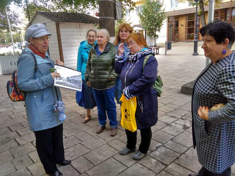 Рязанцы и гости города совершили путешествие с Анной Дмитриевной по следам ее героев. Они прошли по улицам Соборной, Почтовой, Ленина, увидели достопримечательности конца XIX – начала XX вв. и смогли сравнить старые фотографии зданий, показанные автором романов, с их современным видом.