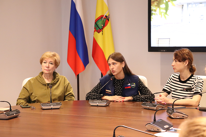 Гостей встретила директор библиотеки имени Горького, председатель Общественной палаты Рязанской области, заслуженный работник культуры Российской Федерации Наталья Николаевна Гришина, которая рассказала о том, как сотрудники Горьковки, районных библиотек, неравнодушные граждане, общественники, благотворительные и волонтерские объединения Рязанской области помогают Донбассу и защитникам новых российских регионов. Наталья Николаевна отметила прочные партнерские связи, налаженные между нашими регионами, рассказала о многочисленной делегации наших коллег из ЛДНР на недавно завершившемся фестивале «Читающий мир». Особенный интерес гостей вызвал состоявшийся в рамках фестиваля показ документальных фильмов Владислава Евтушенко «Мариупольский дневник», потому как Анна и Олеся не понаслышке знают о тяжелом положении этого израненного войной города, т.к. сами одни из первых волонтеров приехали с гуманитарной помощью для его жителей.