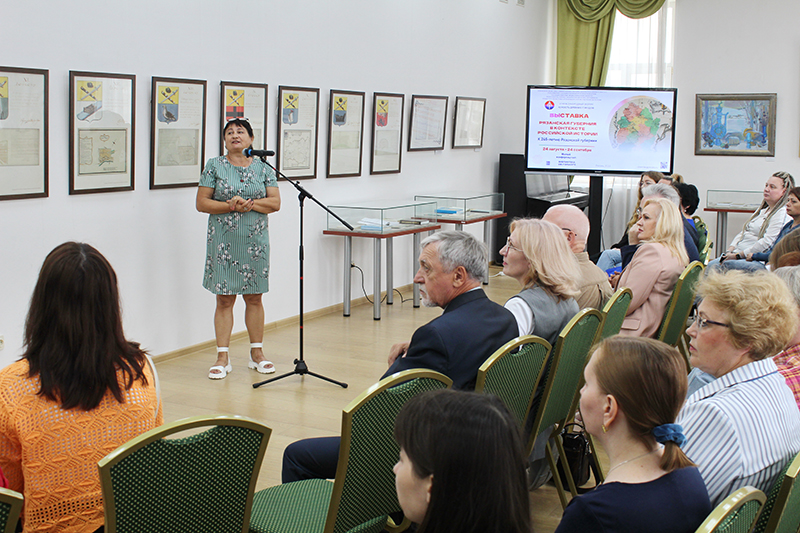 В заключение церемонии открытия выставки «Рязанская губерния в контексте Российской истории» куратор выставки Марина Алексеевна Абрамова поблагодарила всех партнеров проекта за предоставленные уникальные документальные и библиографические материалы.