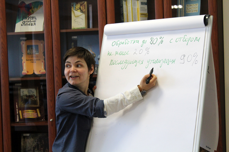 На секции «Рациональное природопользование и ресурсосбережение: основные принципы и подходы» собравшиеся принимали участие в беседе с Антоном Суминым, руководителем сектора по связям с общественностью компании «Эко-Пронск», слушали эмоциональное выступление руководителя Центра экономии ресурсов Алины Кольовскы.