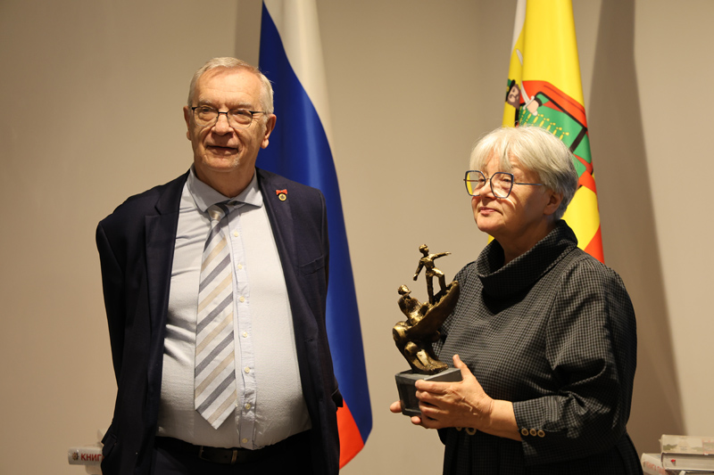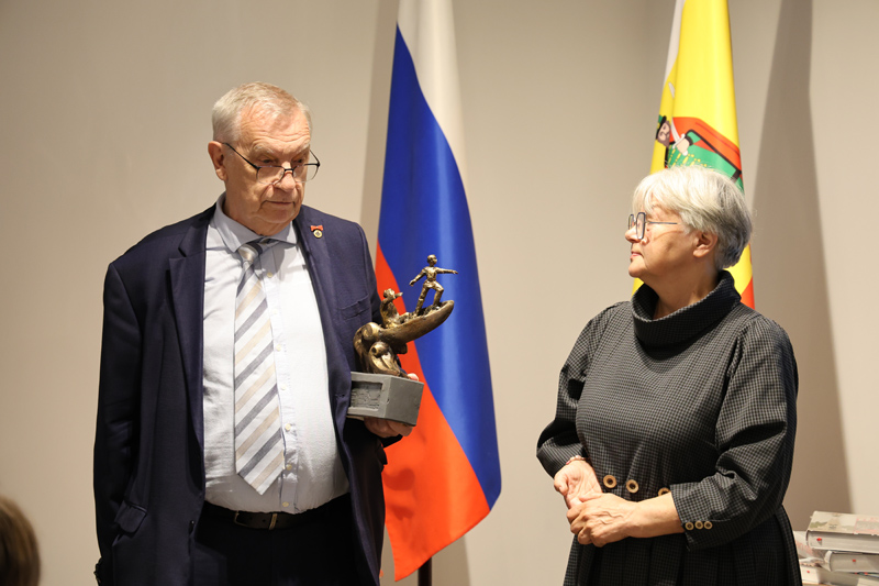 В завершении встречи рязанский скульптор, заслуженный художник РФ, почетный член Российской академии художеств, член-корреспондент Петровской академии наук и искусств Раиса Алексеевна Лысенина вручила Валерию Евгеньевичу Егошкину эскиз памятника, посвященный первым послам Руси Ерофею Заболоцкому и его сыну Кириллу.