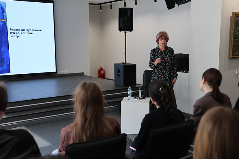 Ирина Николаевна познакомила студентов с историей Рязанского отделения Союза художников РФ, рассказала о художниках-фронтовиках и о тех, кто жил в Рязани и создавал свои работы в Доме художника в послевоенное время.