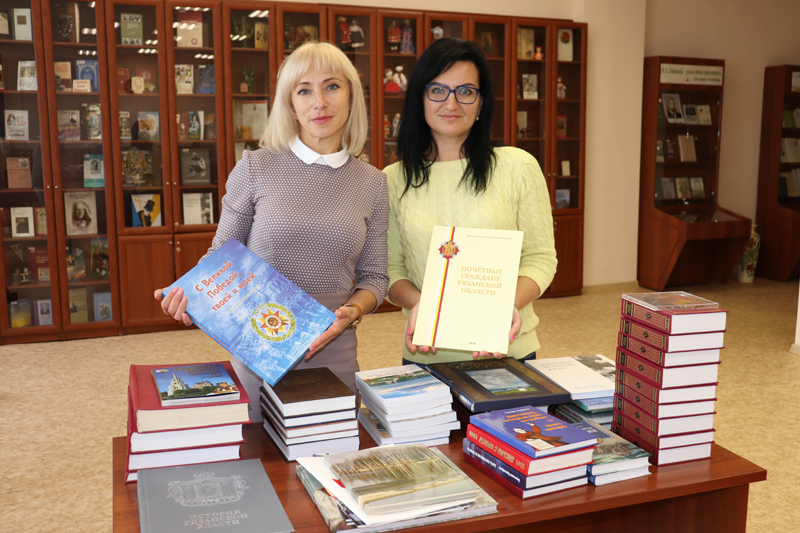 Среди подобранных книг: полное собрание сочинений Сергея Есенина в семи томах; подарочное издание в фотографиях «Есенинская РУСЬ», посвященное памятным местам села Константиново; документально-художественное повествование «Вице-адмирал Головнин» Людмилы Анисаровой, «История Рязанского края. 1778 – 2007 гг.»; «История Рязанской области», книга о тех, кто управлял Рязанским краем на протяжении последних 230 лет; «Рязанская энциклопедия» в четырех томах.