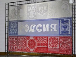 Михайловское кружево украсило нижнюю часть панно. Рязанские мастерицы из г. Михайлова сплели два квадрата полотна красного цвета. Народный промысел на Международной выставке-форуме «Россия» представила заслуженный художник РФ Татьяна Преснова.
