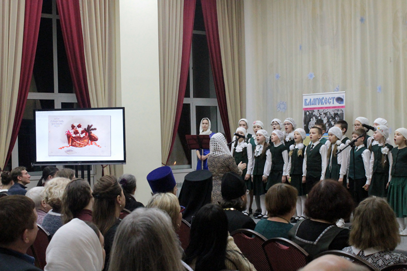 На вечере звучали музыкальные поздравления в исполнении мужского хора храма Спаса-на-Яру, дуэта иерея Димитрия Корнилова и Александра Костенко, хора православной гимназии во имя свт. Василия Рязанского. Также поздравить газету пришли Крылатик и Крапинка - герои детского журнала «Ступени» (приложение к «Благовесту»).