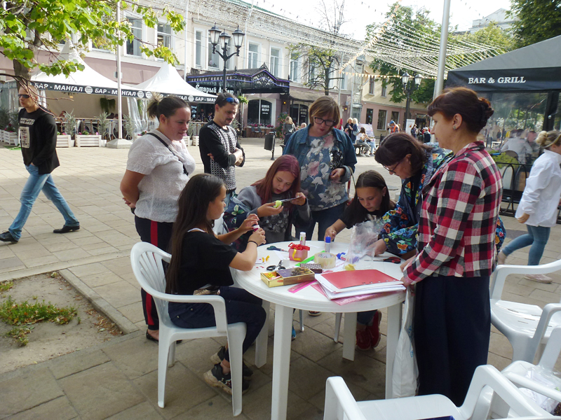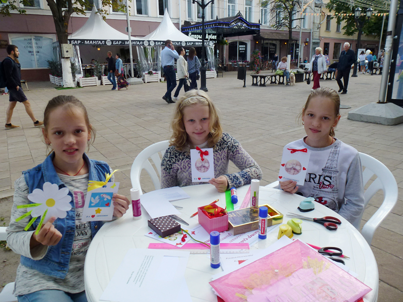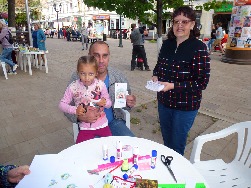Областная библиотека имени Горького внесла в атмосферу этого дня свой колорит. Сотрудники библиотеки подарили жителям и гостям города красочные буклеты, из которых они узнали об истории праздника, и белые ромашки как символ семьи, любви и верности. В ходе мастер-класса «Ромашки нежной лепесток» все желающие проявили свою фантазию в изготовлении праздничной открытки и получили массу положительных эмоций и приятных впечатлений от общения друг с другом.