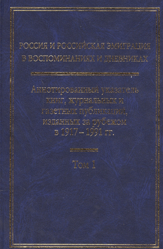 Россия и российская эмиграция в воспоминаниях и дневниках = Russia and the Russian emigration in memoirs and diaries : аннотированный указатель книг, журнальных и газетных публикаций, изданных за рубежом в 1917–1991 гг. : в 4 т. / Государственная публичная историческая библиотека России, Стэнфордский университет ; научное руководство, редакция и введение А. Г. Тартаковского [и др.]. – Москва : РОССПЭН, 2003–2006. – 4 т.
