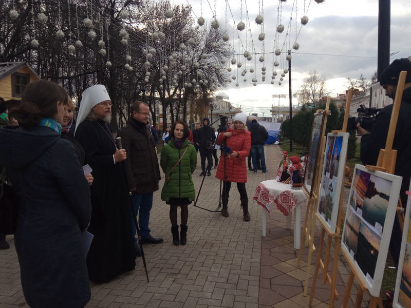 После торжественного молебна митрополита Рязанского и Михайловского Марка и его обращения к прихожанам начались народные гуляния, в которых библиотека приняла самое активное участие. На центральной аллее Кремлевского сквера была организована выставка работ победителей регионального творческого конкурса «Символы малой родины».