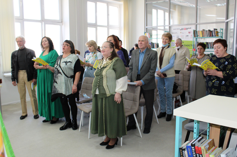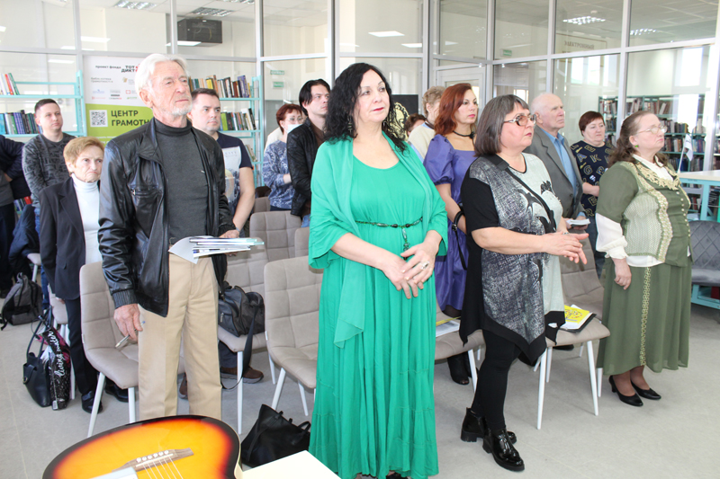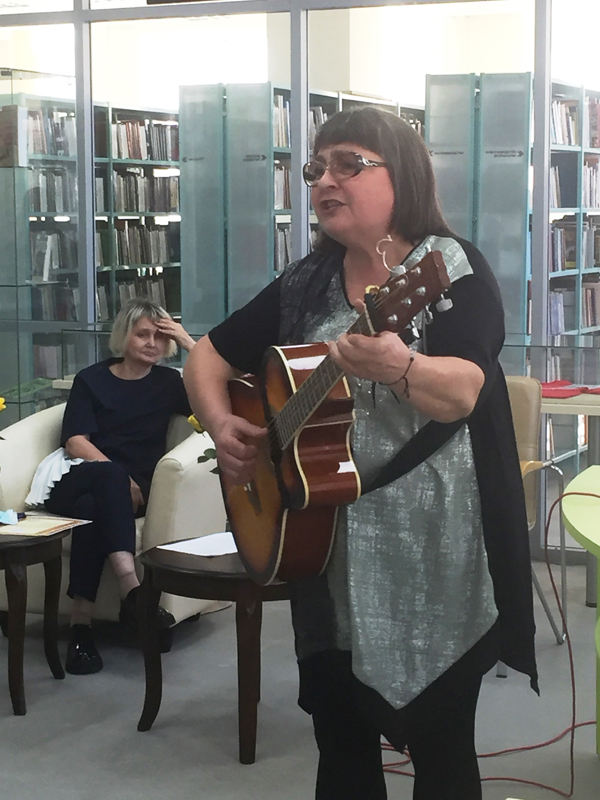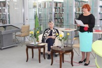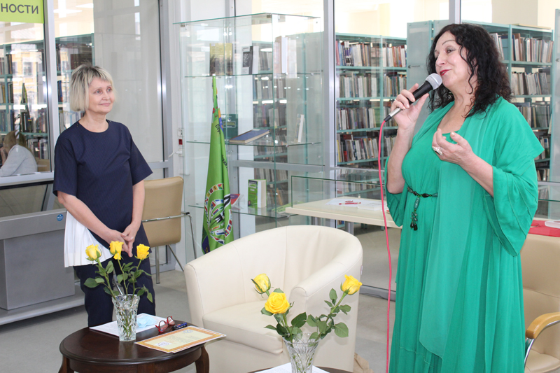 После исполнения гимна лиффтийцев от Рязанской областной универсальной научной библиотеки им. Горького участников презентации поздравила главный библиотекарь кафедры периодических изданий Вера Буковская.