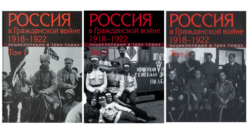 Россия в Гражданской войне 1918–1922 : энциклопедия в трех томах / Российское историческое общество, Федеральное архивное агентство, Российский государственный архив социально–политической истории [и др.]. – Москва : РОССПЭН, 2020–2021. –