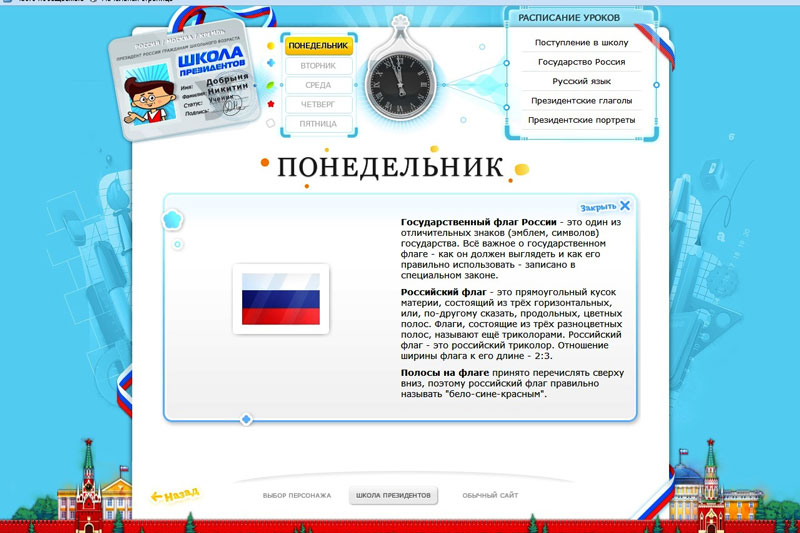 Для маленьких граждан нашей страны была подготовлена викторина на знание официального символа с использованием ресурсов сайта «Президент России – гражданам школьного возраста».