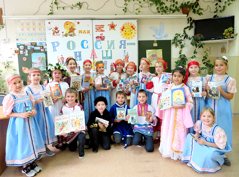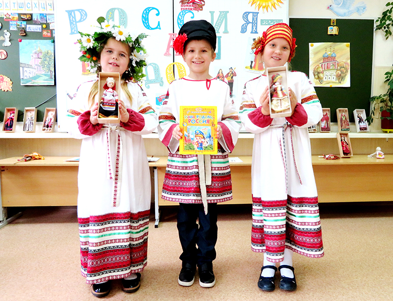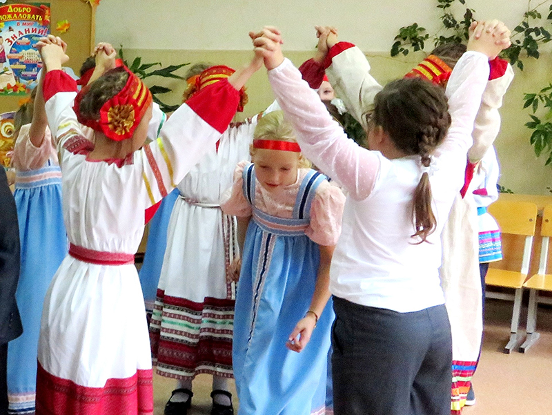 Школьники исполняли русские песни, народные танцы, читали стихи, посвященные традициям, которые укрепляют и поддерживают дружбу и взаимопонимание между учащимися разных национальностей в классе. Библиотекарь провела с детворой беседу о том, что такое Родина, с чего она начинается и каковы основные символы нашего государства. Ребята рассказали о своем отношении к России и вспомнили пословицы и поговорки о родной стороне.
