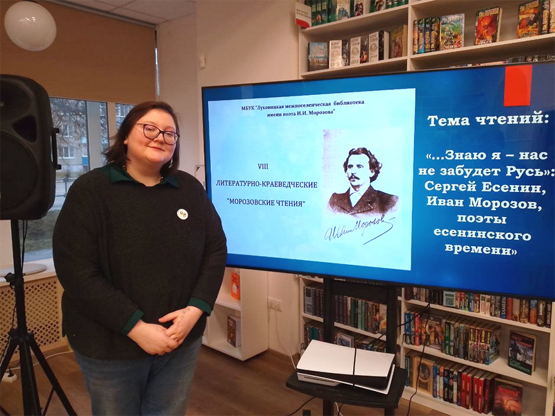 29 ноября в Луховицкой межпоселенческой библиотеке имени поэта И.И. Морозова прошли восьмые литературно-краеведческие чтения. Они были посвящены жизни и творчеству поэта, имя которого носит библиотека, – Ивана Игнатьевича Морозова (1883–1942), уроженца Рязанского края, чей путь оказался тесно связан с историей региона и духовной культурой России первой половины XX века. Мероприятие объединило исследователей, филологов, краеведов, библиотечных специалистов и представителей литературных объединений Московской, Рязанской и других областей.