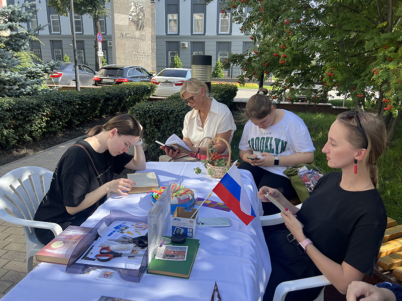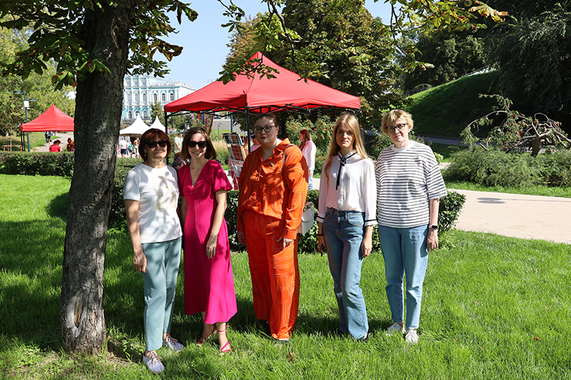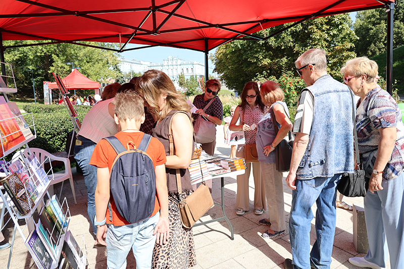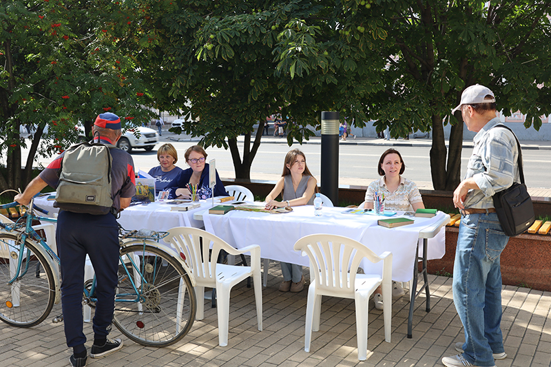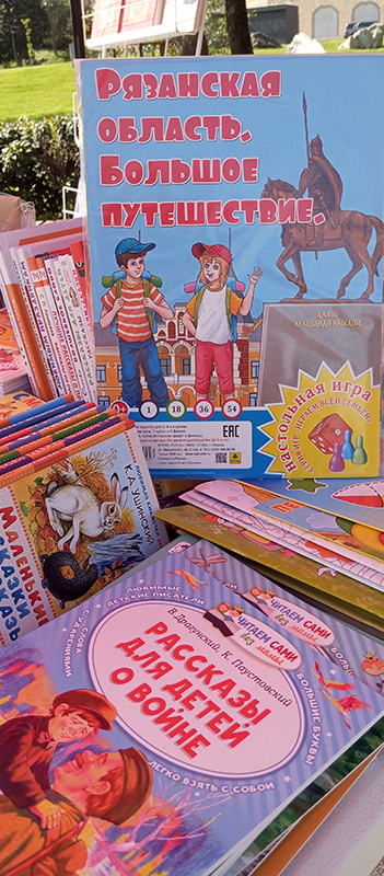 Особое внимание на Лыбедском бульваре привлекла книжная лавка «Читаем всей семьёй». Здесь каждый мог найти интересные для себя издания о Рязанском крае – его истории, культуре, памятниках и традициях. Большим интересом пользовалась серия альбомов-путеводителей «Народные художественные промыслы Рязанской земли», знакомящая с уникальными ремёслами: «Михайловское кружево», «Кадомский вениз», «Рязанская вышивка», «На женской половине», «Скопинская керамика». Эти книги позволяют прикоснуться к миру народных мастеров и почувствовать гордость за богатое наследие нашего края. Гостей радовали и новинки: книга «Город Глебов. Возвращение из небытия», краеведческое издание «Про кабанов, бобров и выхухолей», а также серия открыток Екатерины Гончаровой с милыми лисятами на фоне рязанских достопримечательностей. Кроме того, в лавке можно было приобрести сувенирную продукцию с символикой Рязани. Для многих посетителей эти книги и открытки стали не только памятными покупками, но и настоящими подарками к празднику, которые сохранят тепло юбилейных дней.