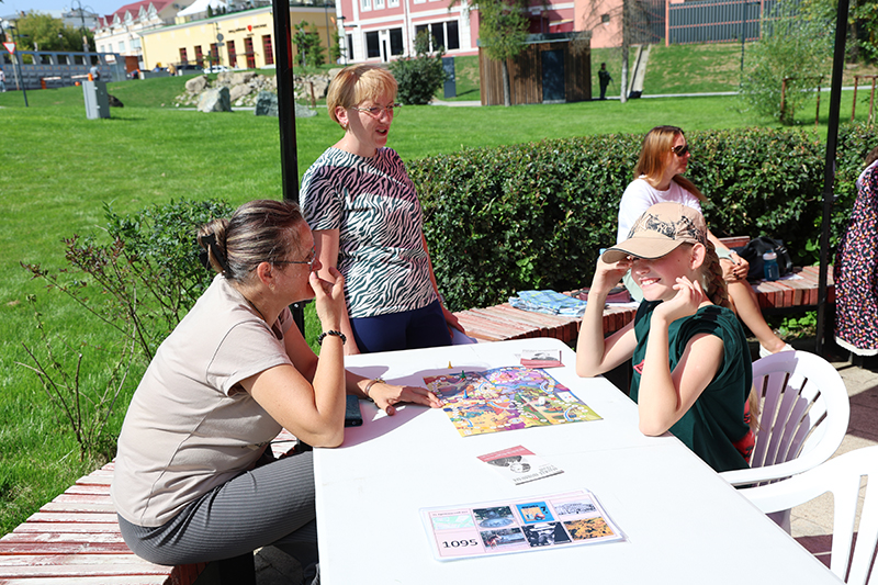 Необыкновенно тёплую атмосферу создала игротека «Я в этом городе живу», также работавшая на Лыбедском бульваре. Здесь под красными шатрами собирались семьи с детьми, компании друзей, чтобы вместе сыграть в настольные и интерактивные игры. В игровой форме участники узнавали интересные факты о Рязани, её достопримечательностях и истории, проверяли себя на смекалку и находчивость. Игротека превратилась в пространство общения и веселья, где каждый чувствовал себя частью единой праздничной команды. Она стала ещё одним доказательством того, что библиотека умеет говорить с горожанами на современном и живом языке – языке игры и совместного творчества.