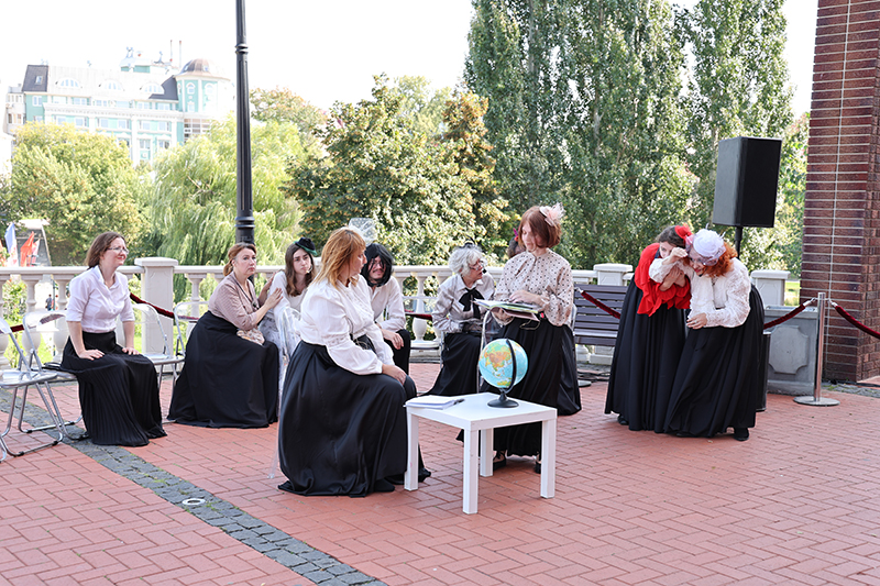 В этот же день на Лыбедском бульваре свою программу «Чехов, Есенин, театр!» представил любительский театр «Атмосфера» под руководством Наталии Королёвой. Зрители увидели инсценированные отрывки из рассказов А. П. Чехова «Ну, люди!», где городские сплетницы разыграли истории «Справка», «Беззащитное существо», «Из дневника одной девицы» и «Мальчики». Тонкая ирония Чехова звучала свежо и современно: в характерах героев легко угадывались и черты наших современников. Театралы также подарили публике литературную композицию «Дороги Есенина», где стихи поэта прозвучали с новой силой. Эти выступления не только обогатили программу праздника, но и показали, что слово и сцена по-прежнему остаются важнейшими способами разговора о вечных ценностях.