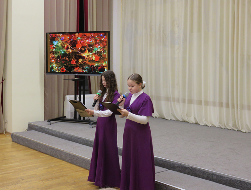 Ведущими концерта были две ученицы Виктория Паршина и Мария Михайленко. Они с большим артистизмом читали новогодние стихотворения и объявляли музыкальные номера.