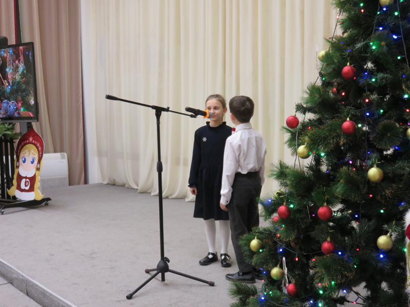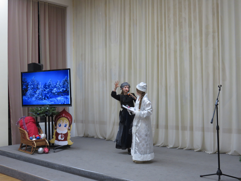 Ребята очутились в волшебной сказке и встретились с любимыми героями - Дедом Морозом, Снегурочкой и Бабой Ягой. Концерт открыла верная спутница новогодних праздников Снегурочка – Виктория Паршина. Она с большим артистизмом читала новогодние стихотворения и объявляла музыкальные номера.