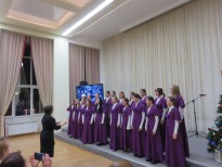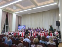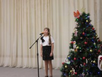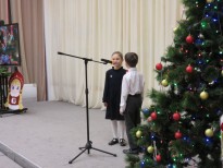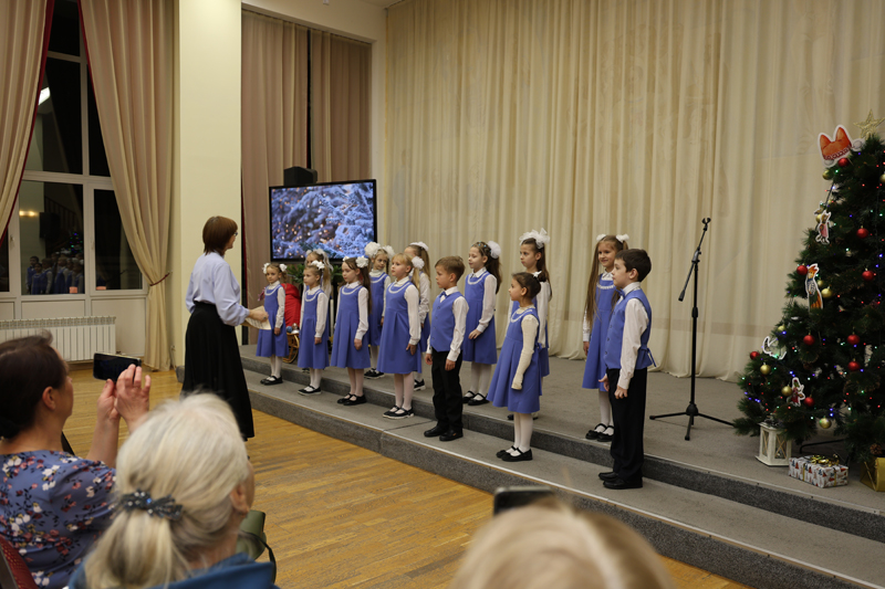 Свои новогодние музыкальные подарки зрителям представили хоровые коллективы школы: хор 1 класса «Бусинки» (руководитель Татьяна Викторовна Цыганкова), хор старших классов «Элегия» и младший хор «Капель» (руководитель Надежда Геннадьевна Юдаева).