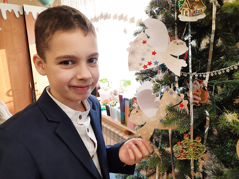 Сотрудники Центра литературы по искусству рассказали ребятам историю появления традиции украшать рождественскую ель игрушками и предложили своими руками создать ангелочка из бумаги, картона и лент. Дети с воодушевлением принялись конструировать сказочных персонажей, которые приносят в каждый дом счастье, дарят надежду в лучшее будущее, ощущение радости, тепла и света.