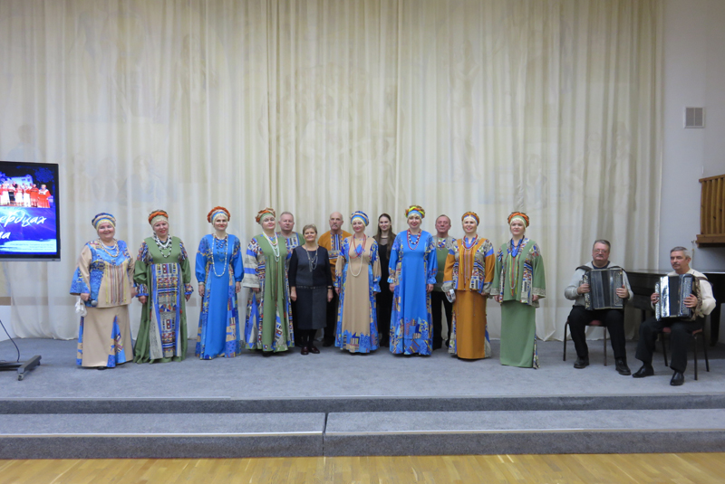 Выступление ансамбля в клубе «ОЛИМП» областной библиотеки им. Горького подарило слушателям яркие эмоции и чудесное настроение. Великолепные костюмы, создающие особую праздничную атмосферу, песни, трогающие душу, наполненные особой энергией и красотой, покорили публику, прикоснувшуюся к подлинной сокровищнице народной песенной культуры, творчеству наших великих земляков.