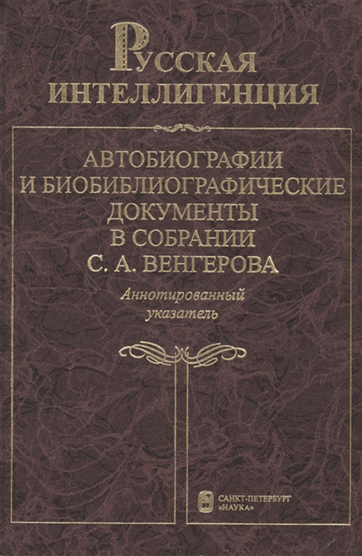 Русская интеллигенция : автобиографии и биобиблиографические документы в собрании С. А. Венгерова : аннотированный указатель : в 2 т. / Российская академия наук, Институт русской литературы (Пушкин. дом) ; под ред. В. А. Мыслякова. - Санкт-Петербург : Наука, 2001-.