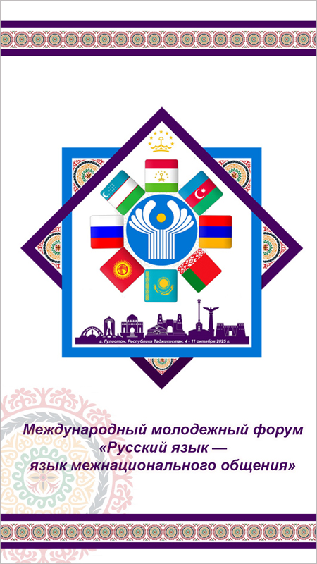 Общественная организация «Дом молодежи» при поддержке Межгосударственного фонда гуманитарного сотрудничества государств – участников Содружества Независимых Государств (СНГ) и Министерства образования и науки Республики Таджикистан с 4 по 10 октября 2025 года проводит в г. Гулистон (Республика Таджикистан) Международный молодежный форум «Русский язык – язык межнационального общения».