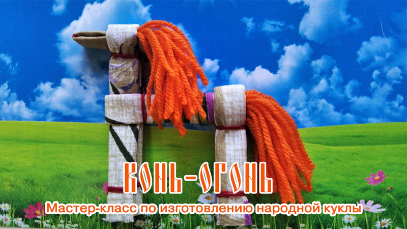 Самыми первыми были поделки в виде коньков из глины. Позже появились деревянные кони. Лошадей изготавливали из соломы, ниток, ткани. Предлагаем вам по мотивам обрядовой куклы «Солнечный конь», которая традиционно плелась из соломы, изготовить народную куклу из ткани «Конь-огонь». По народным поверьям, сделанная своими руками кукла «Конь-огонь» принесет в дом счастье и удачу.