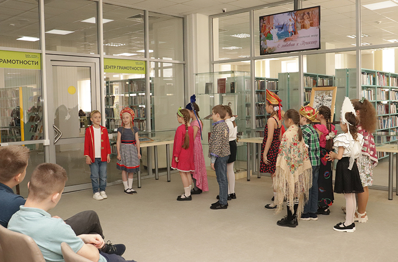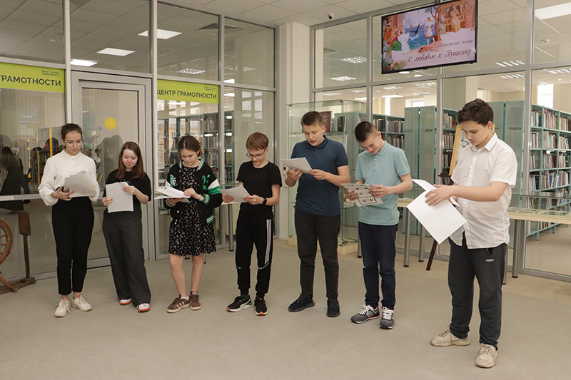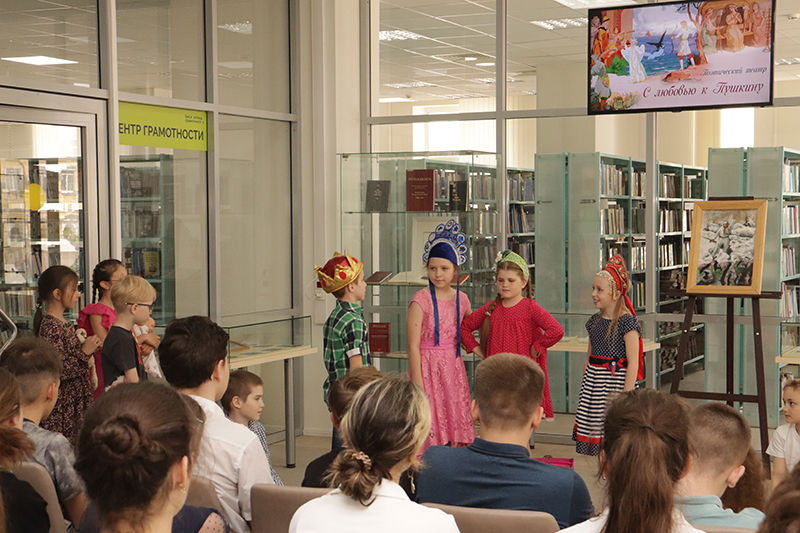 Сотрудники центра книги и чтения пригласили учащихся школы № 1 имени В.П. Екимецкой в поэтический театр. Ребята с удовольствием послушали стихотворения «Я памятник себе воздвиг нерукотворный», «Цветок», «Птичка», «Пророк» и отрывок из поэмы «Медный всадник». Театральное объединение «Преображение» Центра эстетического воспитания детей представило литературно-музыкальную композицию «Сказка о царе Салтане». Ярким завершением встречи стало чтение по ролям «Сказки о попе и о работнике его Балде» в исполнении школьников.