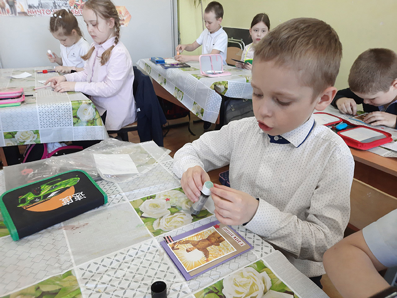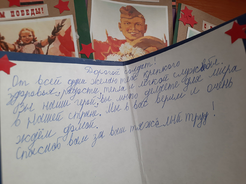 В начале встречи ребятам рассказали о значении этого праздника для всего нашего народа, ученики поделились историями из своей семьи, а затем приступили к созданию открыток. Мальчишки и девчонки старались от всей души, ведь все эти работы будут переданы на фронт сегодняшним солдатам – участникам СВО. Открытки сопровождают пожелания, которые ребята сочиняли заранее, вместе с мамами и папами (орфография сохранена): «С праздником, дорогой солдат!», «Возвращайтесь скорее домой с Победой!», «Вы – настоящие герои и мы гордимся Вами!», «Хочу быть похожим на тебя!», «Спасибо вам за ваш труд!», «Пусть Ангел-хранитель бережёт тебя от пуль!» - эти добрые слова согреют душу каждого, кто их прочтёт.