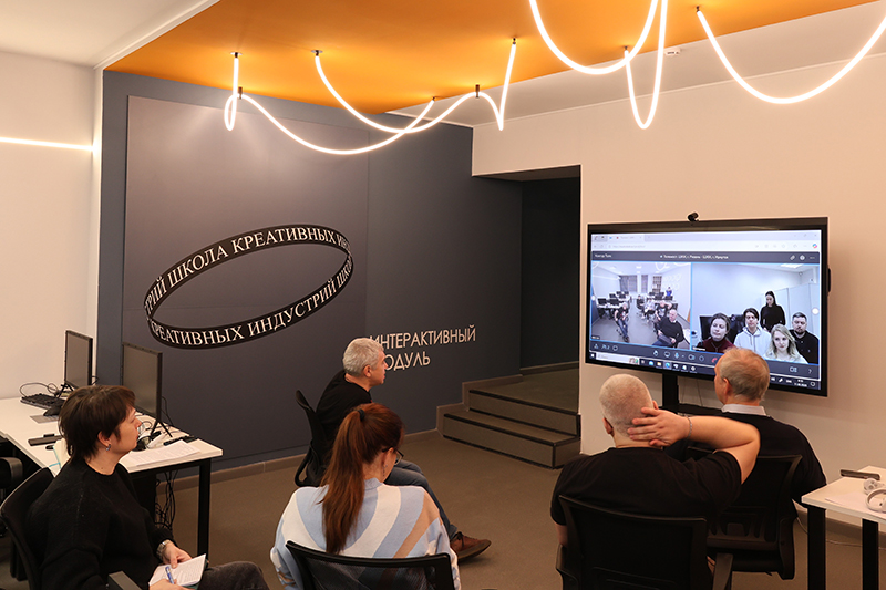 Сегодня в центре «Школа креативных индустрий» состоялся телемост с коллегами из Иркутска. Онлайн-встреча была посвящена организации учебного и рабочего процесса в Школах креативных индустрий, открытых на базе библиотек. В диалоге принимали участие руководители школ, преподаватели и методисты.
