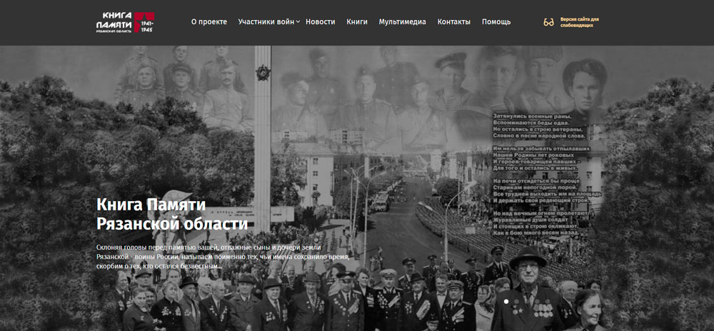 В преддверии 75-летия Победы в Великой Отечественной войне в Рязанской области открыт сайт, посвященный героям сражений – уроженцам Рязанской области. Этот ресурс – летопись судеб наших земляков, интерактивный памятник участникам Великой Отечественной войны, знак уважения и признательности тем, кто отдал свою жизнь за честь и независимость нашей Родины.