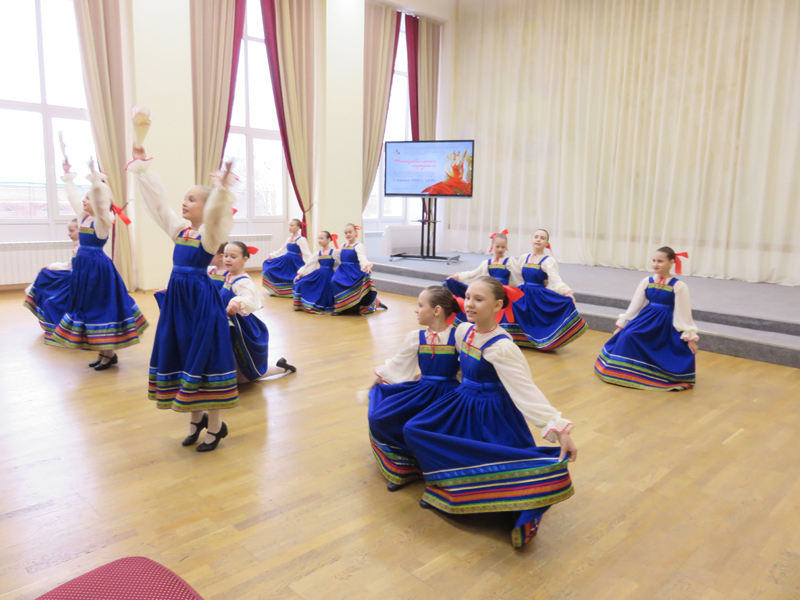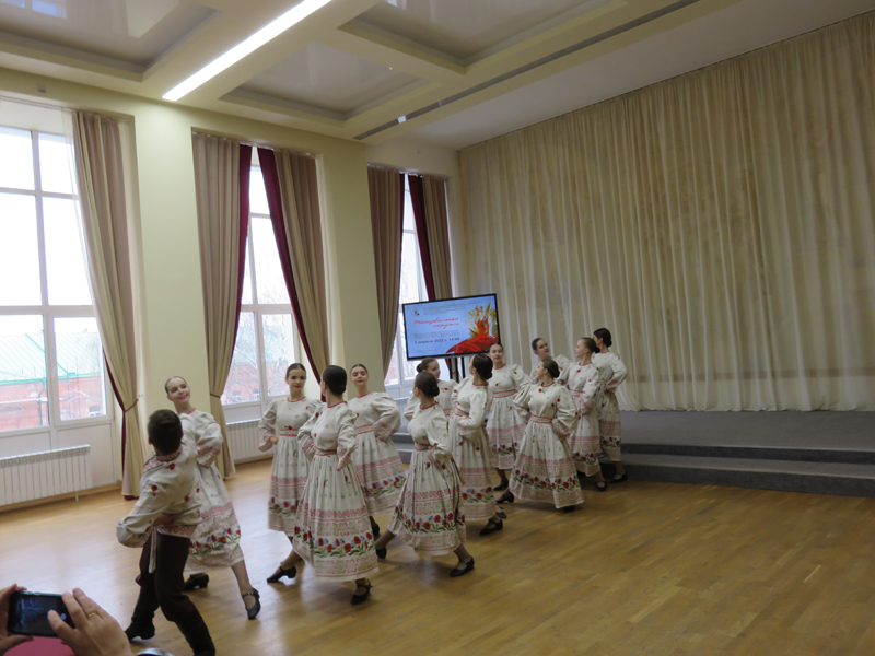 Выступление ансамбля «Юность» на площадке библиотеки стало ярким запоминающимся событием. Великолепные композиции, раскрывающие богатство и красоту народной хореографии, самобытная музыка, красочные костюмы, исполнительское мастерство и задор юных танцоров произвели на публику большое впечатление. На сцене, словно сверкающие грани калейдоскопа, один прекраснее другого, сменяли танцы друг друга. Были показаны белорусский танец «Моя хорошуха», литовский танец «Воображалы», татарский танец «С пиалой» и целая россыпь русских народных и казачьих танцев, вдохновенно исполненных ансамблем, соло, дуэтом. Чудесно смотрелись хороводы и танцы «Россия» и «Сестре Шуре…» (памяти Сергея Есенина»), «Озорные дробушки», «Чибатуха», «Рязанская змейка», «Зимние забавы», казачьи танцы «Гусеница» и пляс «Я на печке молотила». Завершился концерт масштабной и очень красивой танцевальной композицией «Русский танец», памяти великого балетмейстера Игоря Моисеева.
