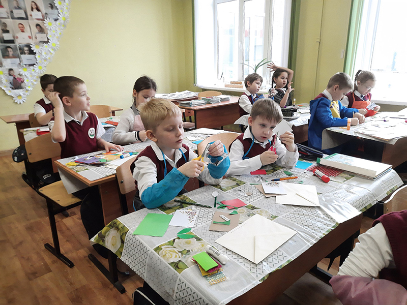 В рязанской школе № 36 прошла творческая встреча, во время которой сотрудники Центра литературы по искусству провели мастер-класс по изготовлению поздравительных открыток для любимых мам, бабушек и сестёр.