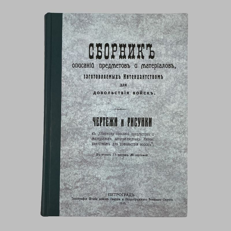 Сборник описаний предметов и материалов, заготовляемых Интендантством для довольствия войск. Петроград : Тип. Штаба войск Гвардии и Петроградскаго Военнаго Округа, 1915. – Репринт. изд. – Москва : Хобби Пресс, 2012. – 784 с. : ил.