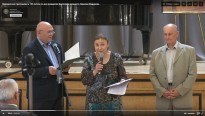 От госкорпорации «Роскосмос» выступили директор административного департамента Дмитрий Александрович Шишкин и летчик-космонавт Российской Федерации, Герой России Петр Валерьевич Дубров. Еще одно «космическое» приветствие прозвучало из уст летчика-космонавта Российской Федерации, Героя России, кавалера французского Ордена Почетного Легиона Сергея Васильевича Авдеева, который присутствовал на мероприятии вместе со своей супругой Марией Аврамиевной Побединской. С приветствием от Российской академии наук выступил научный руководитель Института космических исследований РАН, академик Лев Матвеевич Зеленый.