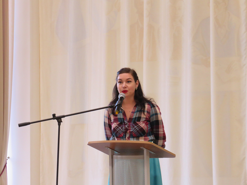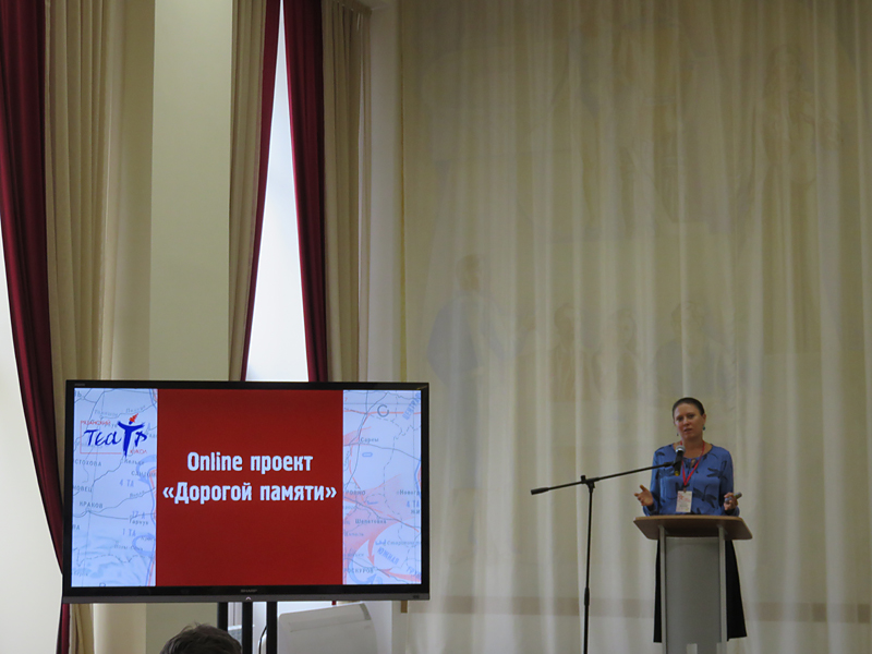 С докладом «Дорогой памяти» выступила Анастасия Милованова, руководитель литературно-драматургической частью Рязанского областного театра кукол, артисты которого показали отрывок из спектакля «Нам дороги эти позабыть нельзя».