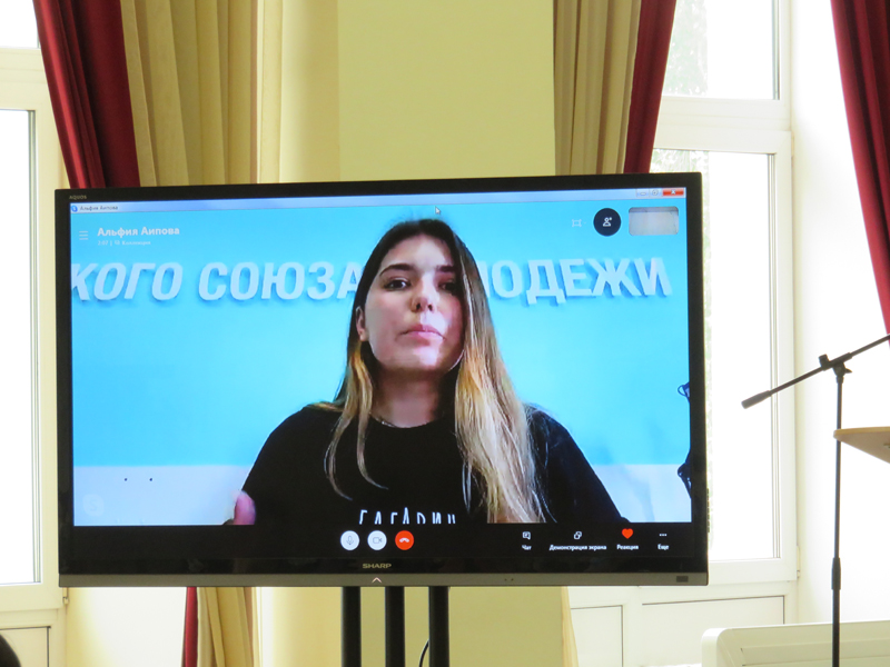 Альфия Аипова, региональный менеджер дирекции программы «Российская студенческая весна», в онлайн-выступлении рассказала о своей программе поддержки и развития студенческого творчества. Проект «Лица Великой Победы» презентовала Вина Пронина, студентка 3-го курса отделения «Живопись» Рязанского художественного училища им. Г.К. Вагнера.