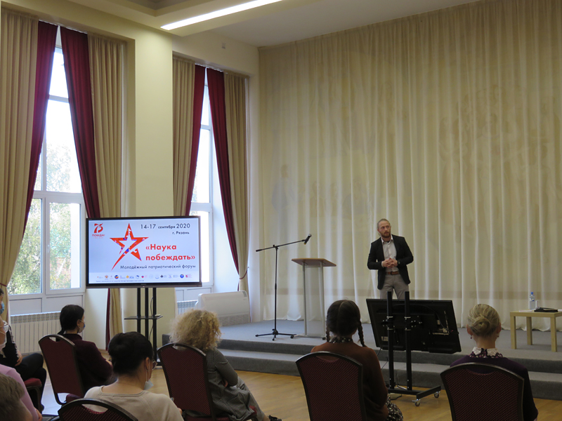 Молодежный патриотический форум «Наука побеждать» продолжает свою работу. В рамках памятной сессии «Забвению не подлежит!» в большом конференц-зале библиотеки им. Горького прошла секция «Творчество молодежи – Великой Победе». Модератором выступила Елена Шаповская, директор Рязанского областного научно-методического центра народного творчества.