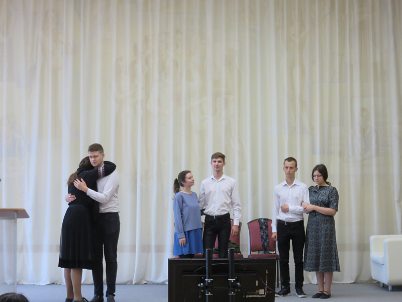 Народный театр студии «Шанс и компания» Центра развития творчества детей и юношества Рязанского района показали фрагмент спектакля «Вспомните, ребята» (режиссер – Светлана Рахманина). Марина Мерзлякова, руководитель губернского молодежного бала рассказала о проекте «Вальс Победы».