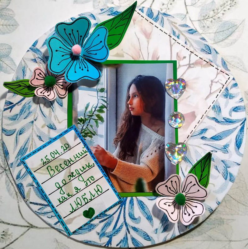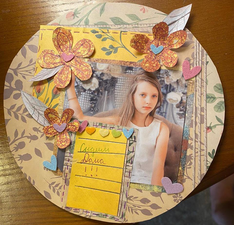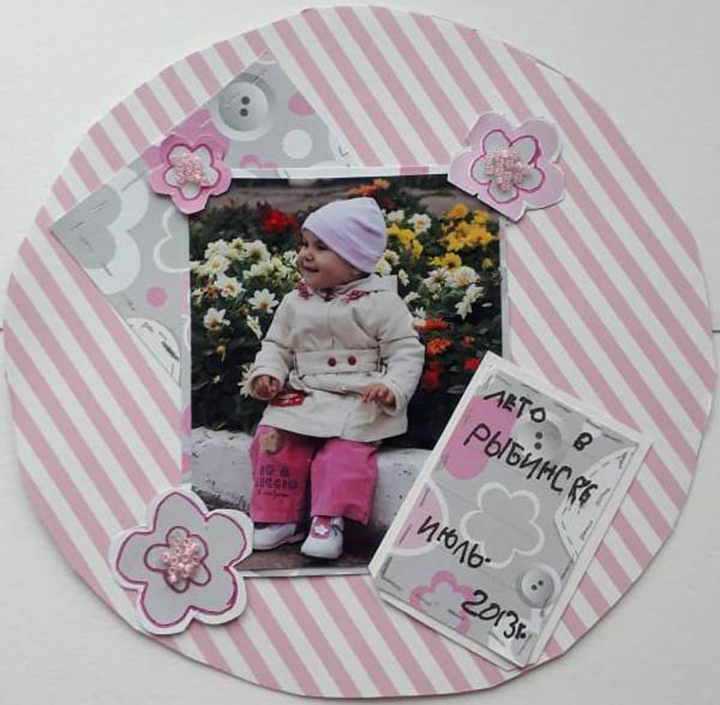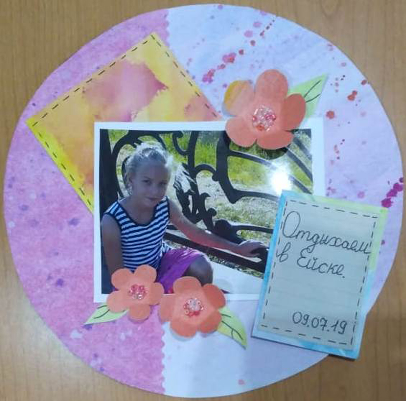 Во время изготовления шестой страницы альбома участники курса должны были не просто красиво оформить свою работу в соответствии с предложенным им пошаговым мастер-классом, но и подумать о кратком описании представленных фотографий. Ведь главная цель скрапбукинга – сохранить семейную и личную историю в фотографиях, рисунках, всевозможных записях. Посмотрите на фото выполненных работ и восхититесь фантазией и умением наших юных рукодельниц.