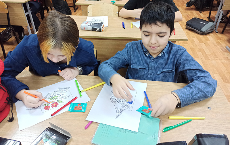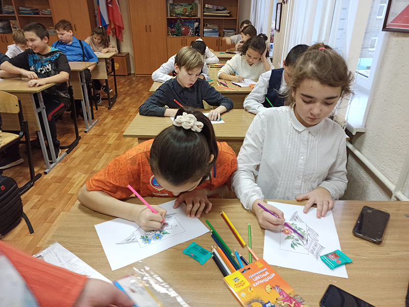 В конце встречи ребята нарисовали рушник – полотенце из домотканого холста для украшения стен избы в праздничные дни и получили небольшие сладкие призы.