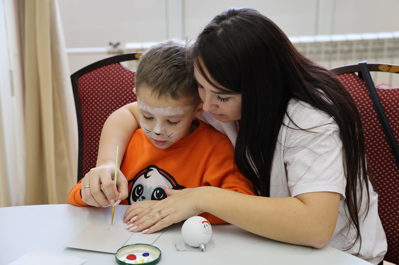 Программа праздника была очень насыщенной: состоялись мастер-классы для детей по росписи елочных шаров, созданию ангелов из макраме, а родители забрали с собой новогоднюю композицию, сделанную своими руками.