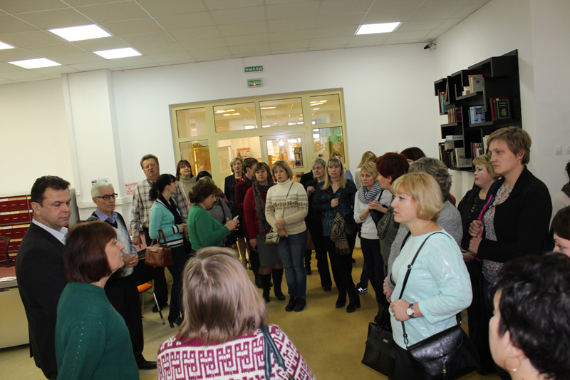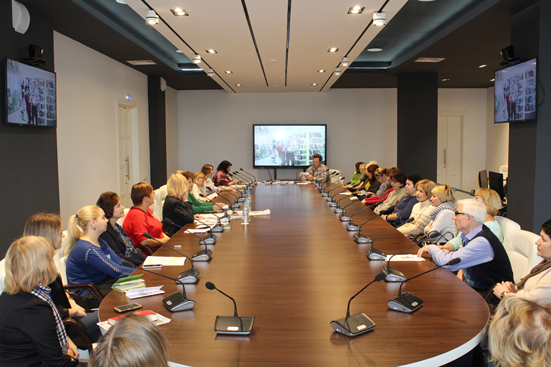 31 октября в библиотеке состоялся педагогичесокий совет МБОУ «Школа № 60» «Духовно-нравственное воспитание как ключевое требование ФГОС и ООО». Его открыла директор учреждения Наталья Николаевна Гришина. В ходе экскурсии по залам и экспозициям было рассказано о возможностях библиотеки как главного информационного, образовательного и методического центра рязанского региона, о том, что библиотека стремится быть центром культурного притяжения, местом просвещенного досуга и средоточием общественной жизни города и области.